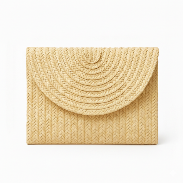 - Lusa Clutch aus Stroh mit gewebtem Innenfutter
